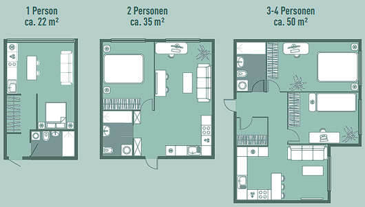 Die qualitativ ausgestatteten Apartments bieten den Komfort eines Hotels mit dem heimeligen Gefühl des eigenen Zuhauses. Smart und kompakt.